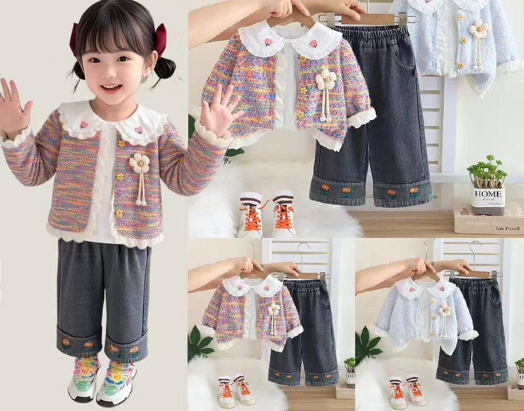 لباس دخترانه ۳تکه شومیز شلوار کت صورتی