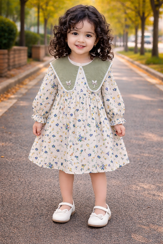 پیراهن دخترونه گل گلی طرح یقه پاپیون