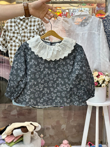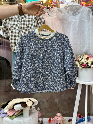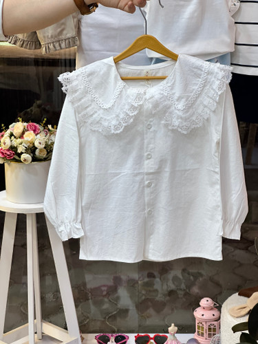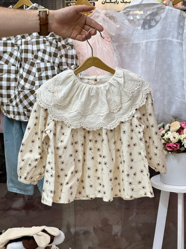 شومیز گل ریز یقه توری دخترونه رنگ کرم