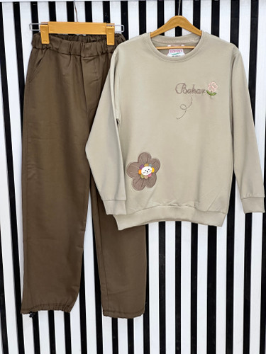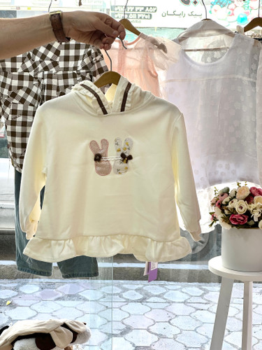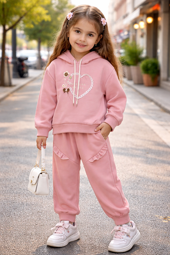 هودی شلوار دخترونه طرح قلب رنگ کرم