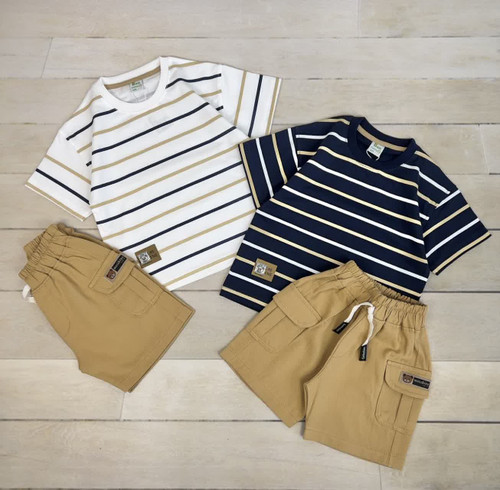 تیشرت شلوارک پسرونه کتان طرح راه راه