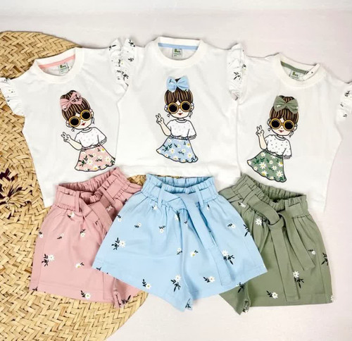 تاپ شلوارک دخترونه کتان طرح دخترعینکی