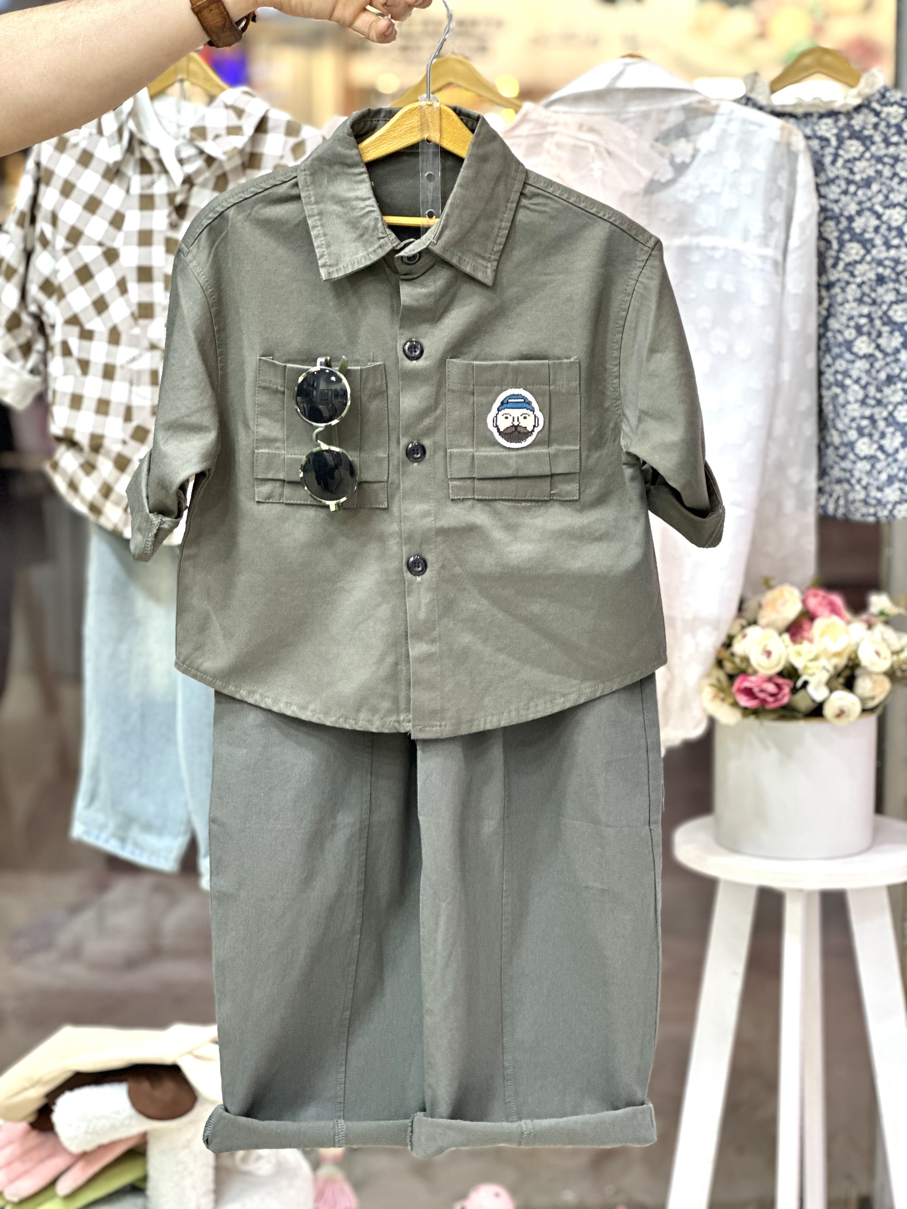پیراهن پسرونه کتان دوجیب طرح ادمک