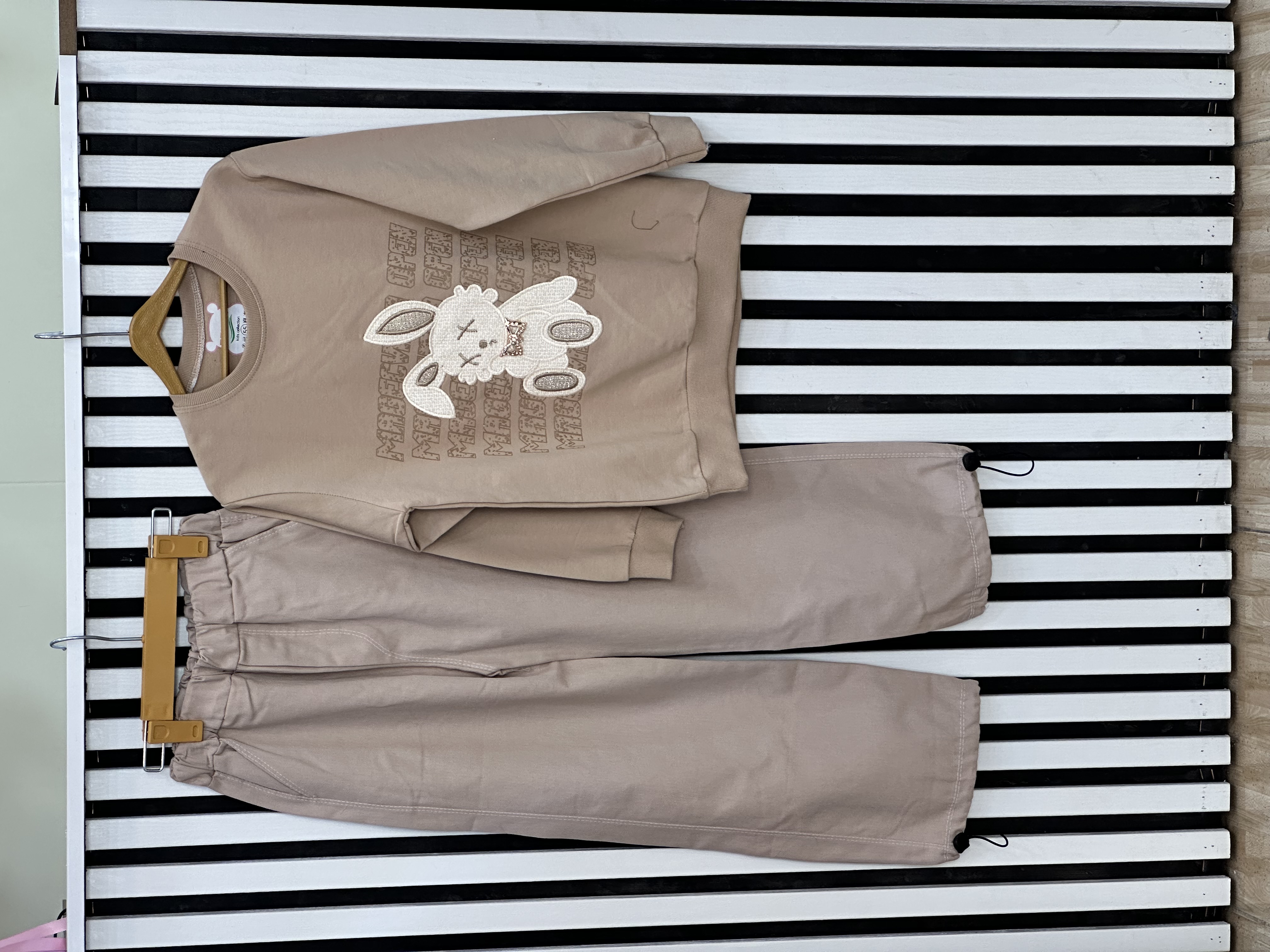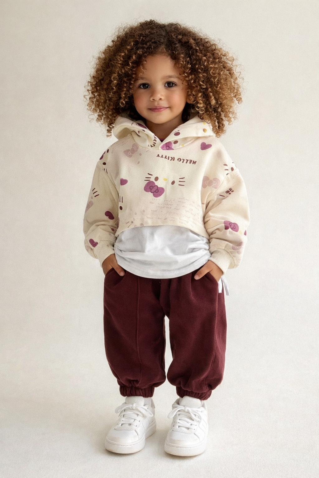 هودی شلوار دخترونه طرح قلب رنگ کرم